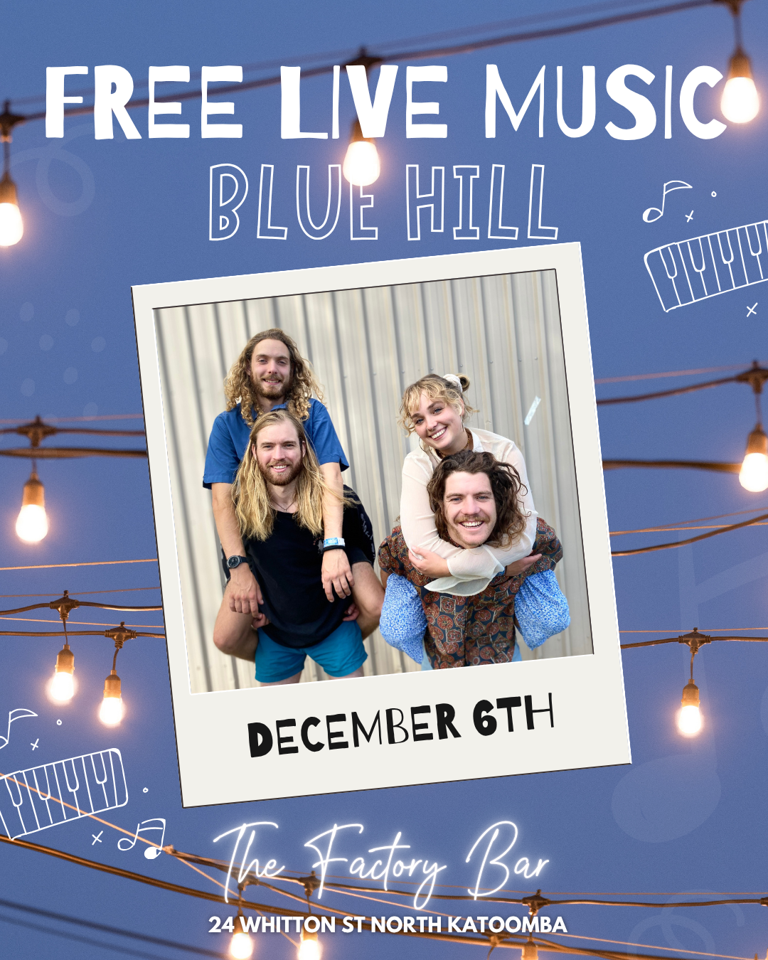 Get ready for rhythm, energy, and good vibes with Bluehill Band — a local group known for their upbeat grooves and feel-good energy.
